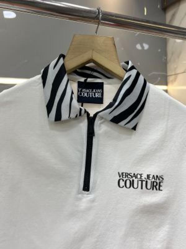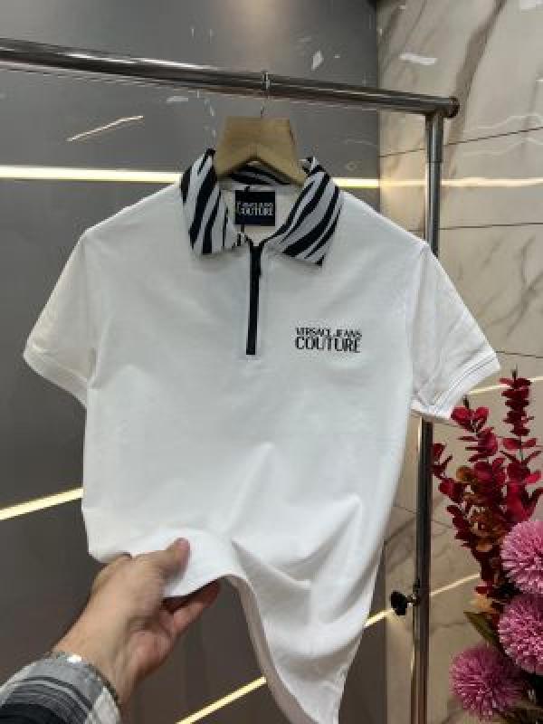 Versac e White Premium Cotton Pique fabric Polo Tshirt with Collar Design and Emboss Logo Zip Style 3528