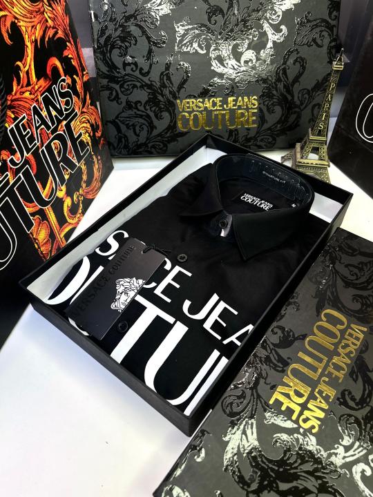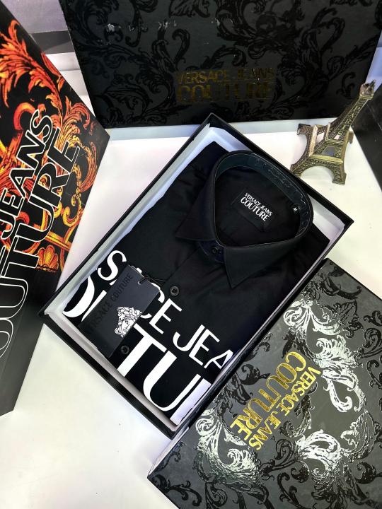 Home Shirts Versace Couture Black Premium Shirt With Brand Box Packing And Carry Bag F1450-BL