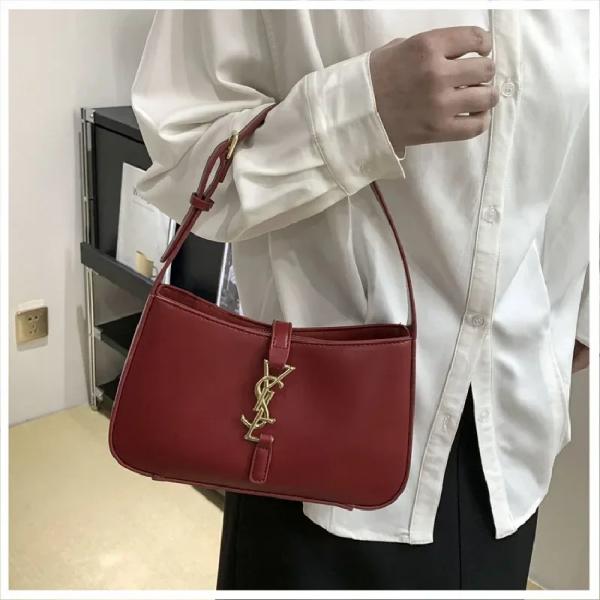 Ysl Yves Saint Laurent Hobo Shoulder Bag With Box And Dust Bag (Maroon) (F-862)