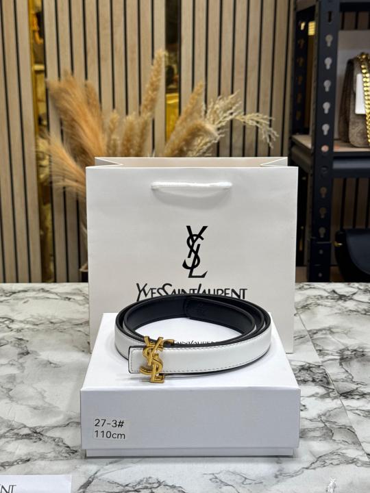 Yves Saint Laurent Monogram Gold Ysl Buckle Leather Belt (27-3)
